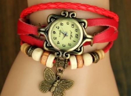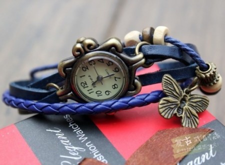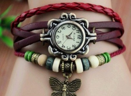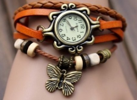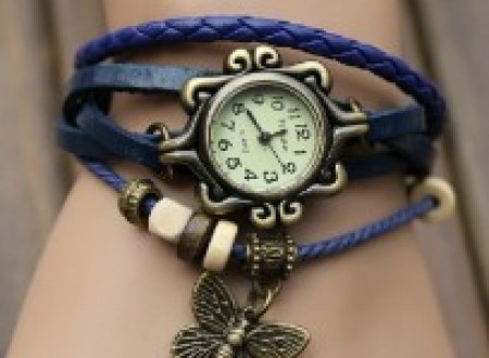 - Ceas Vintage din Piele cu Fluturas