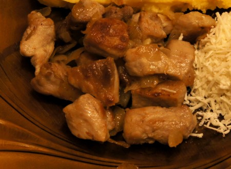 Mamaliguta si tocanita este o mancare consistenta si delicioasa specific moldoveneasca; Amestecul delicios de carne se serveste cu mamaliguta calda si branza.