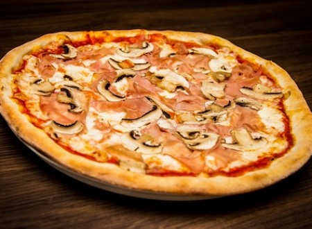 - 1 Pizza Prosciuto Funghi 600 gr. (mozzarella, sunca, ciuperci, sos de rosii)