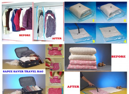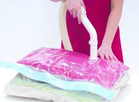 - Vacuum Bag scoate aerul din hainele inpachetate in acesta, micsorand volumul.