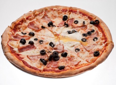 - 1 Pizza Inverno (mozzarella, bacon, masline negre, ou, piper negru mixt, sos de rosii) 480 gr.