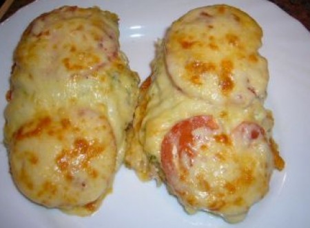 Un platou delicios si satios format dintr-un impresionant piept de pui cu cascaval si legume!